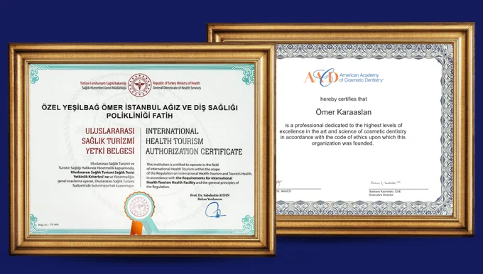 Dr. Omer Karaaslan, our clinic’s founder and chief dentist, graduated from Marmara University, one of Turkey’s leading dental schools. Since 2013, he has specialized in cosmetic dentistry, gaining extensive experience in the field. Dr. Karaaslan continues to practice at Omer Istanbul Dental Center, the clinic he established, which is a top choice for tens of thousands of patients worldwide. He is a member of the AACD (American Academy of Cosmetic Dentistry) and the Turkish Dental Association and has actively participated in numerous international conferences.