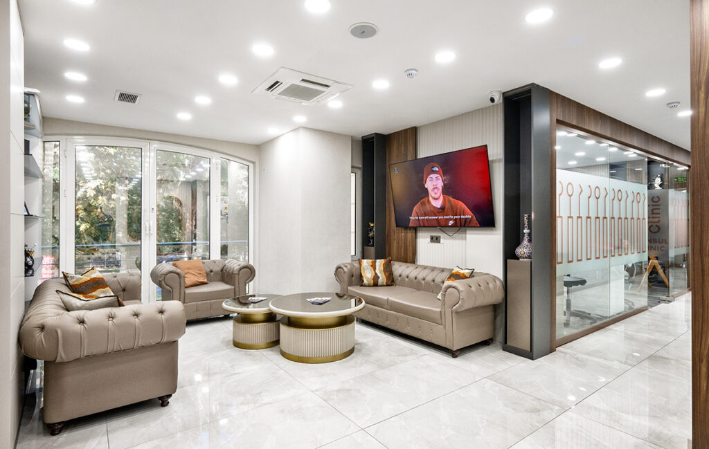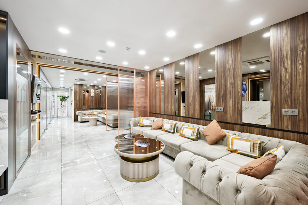 Our clinic is located in Istanbul’s historical peninsula. It is decorated in a modern and minimalist style and equipped to meet all the needs of our guests’ comfort. The treatment rooms in the clinic have high ceilings and are designed to make patients feel comfortable and refreshed. We offer a comfortable treatment process with waiting rooms on each floor, maintaining a clean and tidy environment and providing complimentary refreshments.